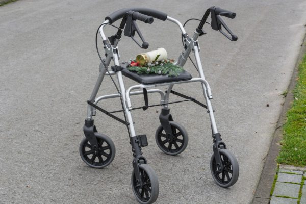 Andador de aluminio con frenos, asiento acolchado y cesta para objetos personales. Ideal para mantener la independencia en tus desplazamientos.